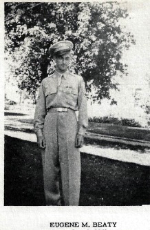 Eugene M. Beaty Entered Service: December 3, 1941 Branch of Service: Army Air Corp Trained at Fort Snelling, Minnesota; Sheppard Field, Texas; Scott Field, Illinois; Miami Beach, Florida; Newport Army Air Field; Drury College, Springfield, Missouri; Mather Field; Santa Ana, California, Kirkland Field; La Junta Army Air Base, California; Amarillo Army Air Base, Texas; Scott Field. Discharged: December 6, 1945, Scott Field, Illinois. Rank: Staff Sergeant (Aviation Student) Total Months in Service: Forty-eight.