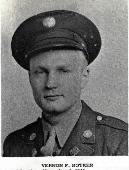 Vernon F. Botker Entered Service: November 6, 1942. Branch of Service: Air Force Trained at Strother Army Air Field, Sheppard Field, Texas; Tyndall Field, Florida. Discharged: February 26, 1946, Camp McCoy, Wisconsin. Rank: Sergeant Total Months in Service: Thirty-nine