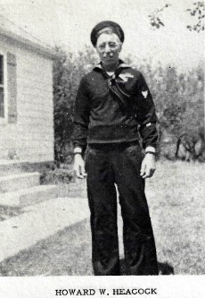 Howard W. Heacock Entered Service: November 10, 1942. Branch of Service: Navy Trained at Norfolk, Virginia December 14, 1942 to February 8, 1943; Davisville, Rhode Island, 68th Naval Construction Battery. Transferred to 1004 C.B. Detachment. Transferred to 17th Navy Construction Battery, Port Hueneme, California. Overseas: May 17, 1943 Theatre of Operation: New Foundland Engagements: Saipan, Pacific, September 1944. Medals Earned: From New Foundland. Returned to U.S.: November, 1943 from Saipan July 3, 1945. Discharged: July 18, 1945, Navy Pier, Chicago, Illinois. Rank: C.M. 1/c. Total Months in Service: Two years, eight months, nine days.