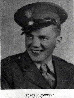 Edwin H. Johnson Entered Service: July 17, 1942. Branch of Service: Engineers. Trained at Camp Robinson, Arkansas; Camp Claiborne, Louisiana. Overseas: November 18, 1943 Theatre of Operation: China, Burma, India. Medals Earned: Good Conduct Medal, Asiatic-Pacific, Two Bronze Stars, Victory Medal. Returned to U.S.: September 7, 1945 Discharged: November 5, 1945, at Fort Snelling, Minnesota. Rank: Corporal Total Months in Service: Forty.