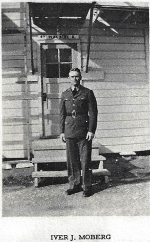 Iver J. Moberg Entered Service: January 28, 1942. Branch of Service: Coast Artillery. Trained at Camp Wallace, Texas; Camp Atterbury, Indiana. Overseas: April 26, 1942. Theatre of Operation: American. Returned to U.S.: February 19, 1945 Discharged: October 13, 1945, Camp Beale, California. Rank: Private First Class Total Months in Service: Forty-four.