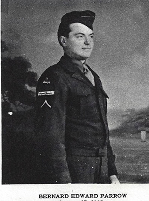Bernard Edward Parrow Entered Service: February 17, 1945. Branch of Service: Armored. Trained at Camp Maxey, Texas. Overseas: August 11, 1945. Theatre of Operation: Asiatic-Pacific. Medals Earned: Victory Medal, Occupation Medal Japan, Good Conduct Medal. Returned to U.S.: October 27, 1946. Discharged: December 13, 1946, Fort Sheridan, Illinois. Rank: Private First Class. Total Months in Service: Twenty-one months, 27 days. Duties of Guard Patrolman and Truck Driver.