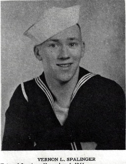 Vernon L. Spalinger Entered Service: November 4, 1944. Branch of Service: Navy. Trained at Farragut, Idaho, Camp Endicott, Davisville, Rhode Island, Port Hueneme, California. Overseas: April 26, 1945. Theatre of Operation: Okinawa. Engagements: Okinawa Theatre. Returned to U.S.: May 14, 1946. Discharged: May 28, 1946, Wold Chamberlin, Minneapolis, Minnesota. Rank: Coxwain. Total Months in Service: Nineteen.