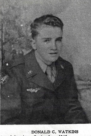 Watkins, Donald C. Entered Service: September 1945 Branch of Service: Air Corp Trained at Sheppard Field, Texas; Scott Field, Illinois; Chanute Field, Illinois. Overseas: August 10, 1946. Theatre of Operation: Pacific Medals Earned: Good Conduct. Returned to U.S.: May 2, 1947 Discharged: July 29, 1947 at Camp Stoneman. Rank: Staff Sergeant Total Months in Service: Twenty-three.